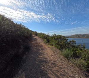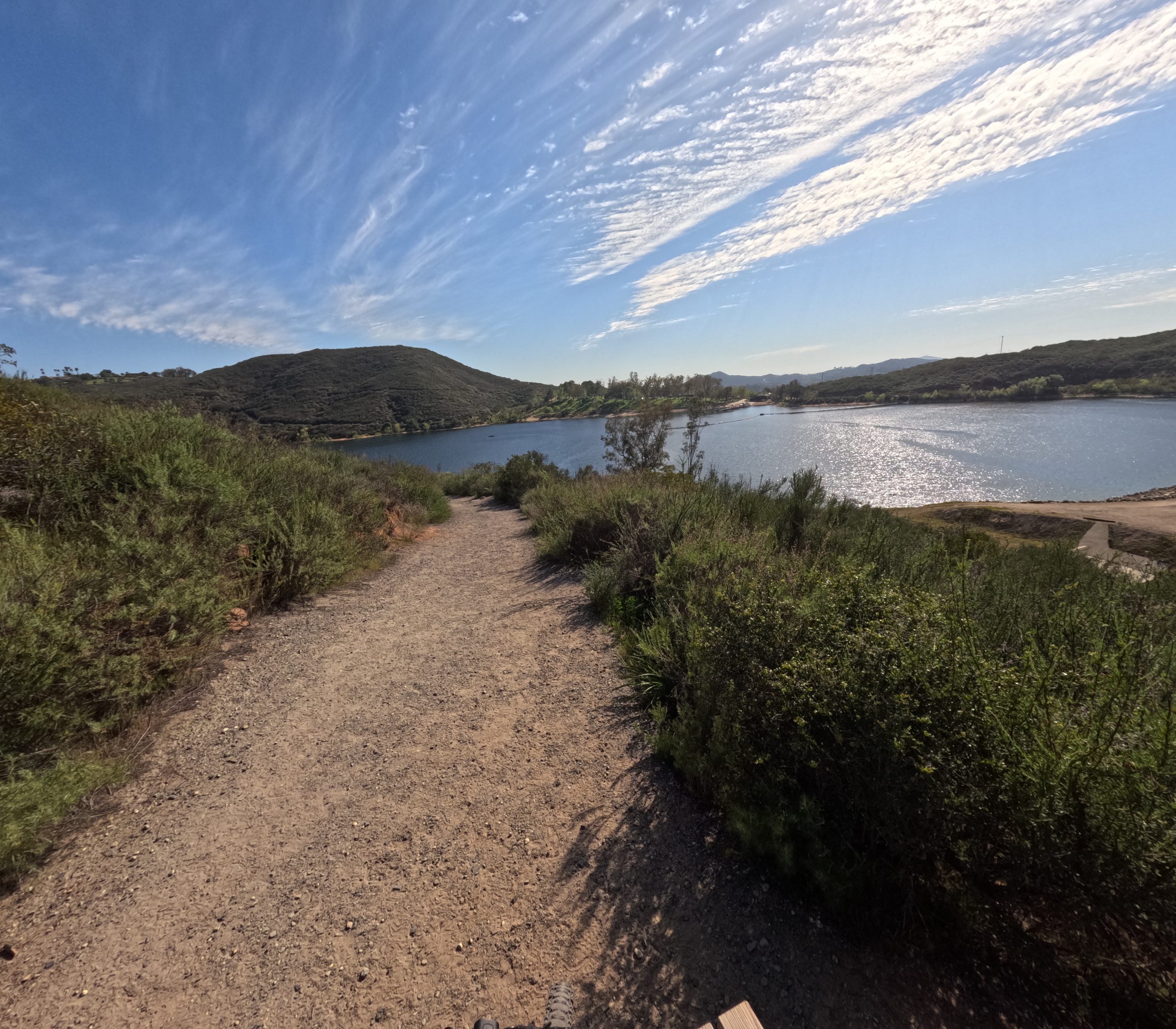 19 You guessed it. Lake Poway. 13 miles on bike. I helmet mounted my GoPro Hero 13 for this trip, and set it to capture pictures every 10 seconds. Some of the results were stunning! The sky looked really special that day. Something about those clouds!