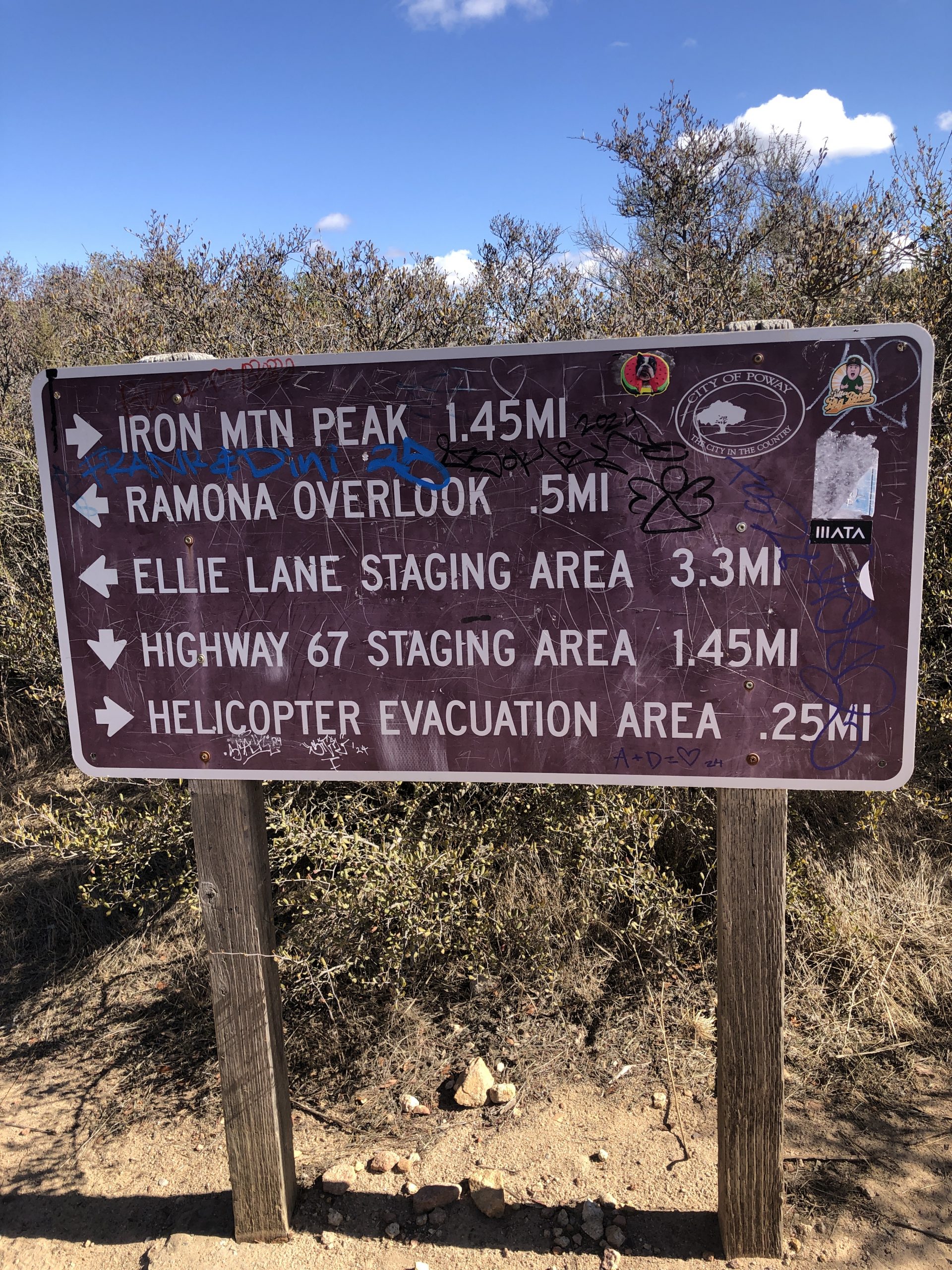 This was my 4th attempt at making it to the top of Iron Mountain in Poway, California. The other attempts were cut short by having to rush back to pick up kids from school. I just didn’t budget enough time and was disappointed to have to turn back when I was so close to the top! So making it there this time, and having an amazing day to do so, really made this one special.